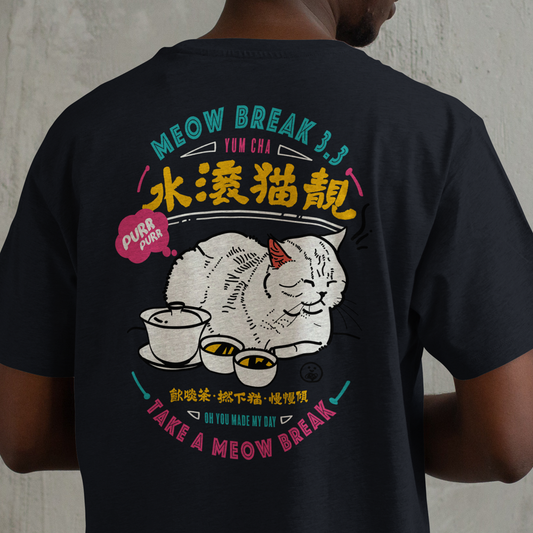 煲水3點3 香港貓奴T恤 | 黑/白色 | 男女適穿