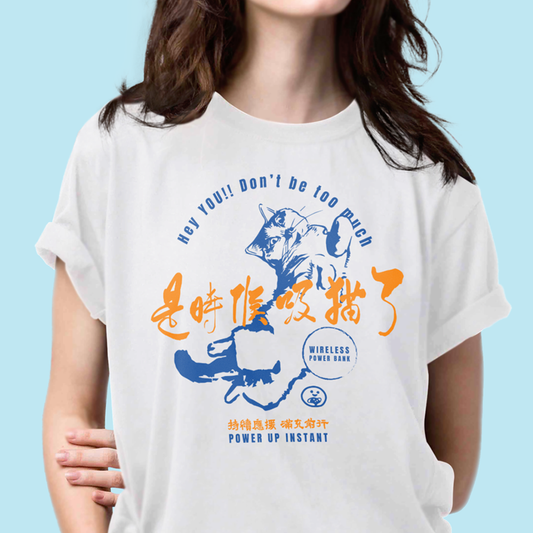胃王下山食好西 |大胃王雪兒聯乘T恤 | 香港貓奴T恤 | 白/深藍色 | 男女適穿