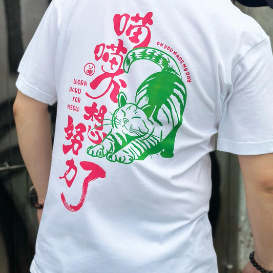 喵喵不想努力了 香港貓奴T恤 | 白/藏青色 | 男女適穿