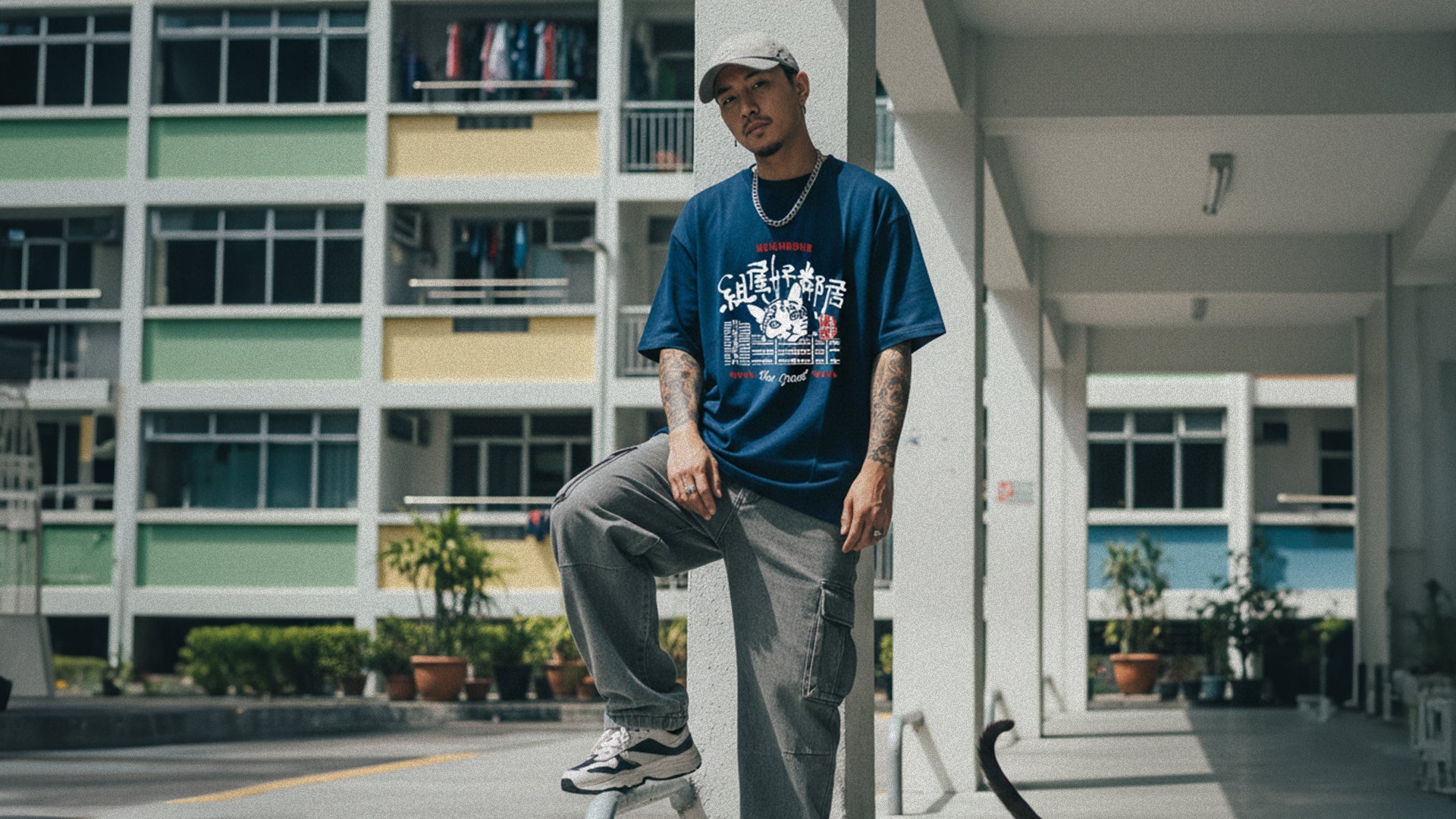 喵喵不想努力了 香港貓奴T恤 | 白/藏青色 | 男女適穿