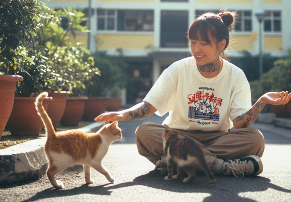 煲水3點3 香港貓奴T恤 | 黑/白色 | 男女適穿