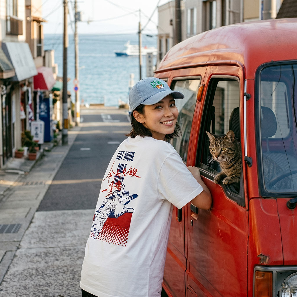 胃王下山食好西 |大胃王雪兒聯乘T恤 | 香港貓奴T恤 | 白/深藍色 | 男女適穿